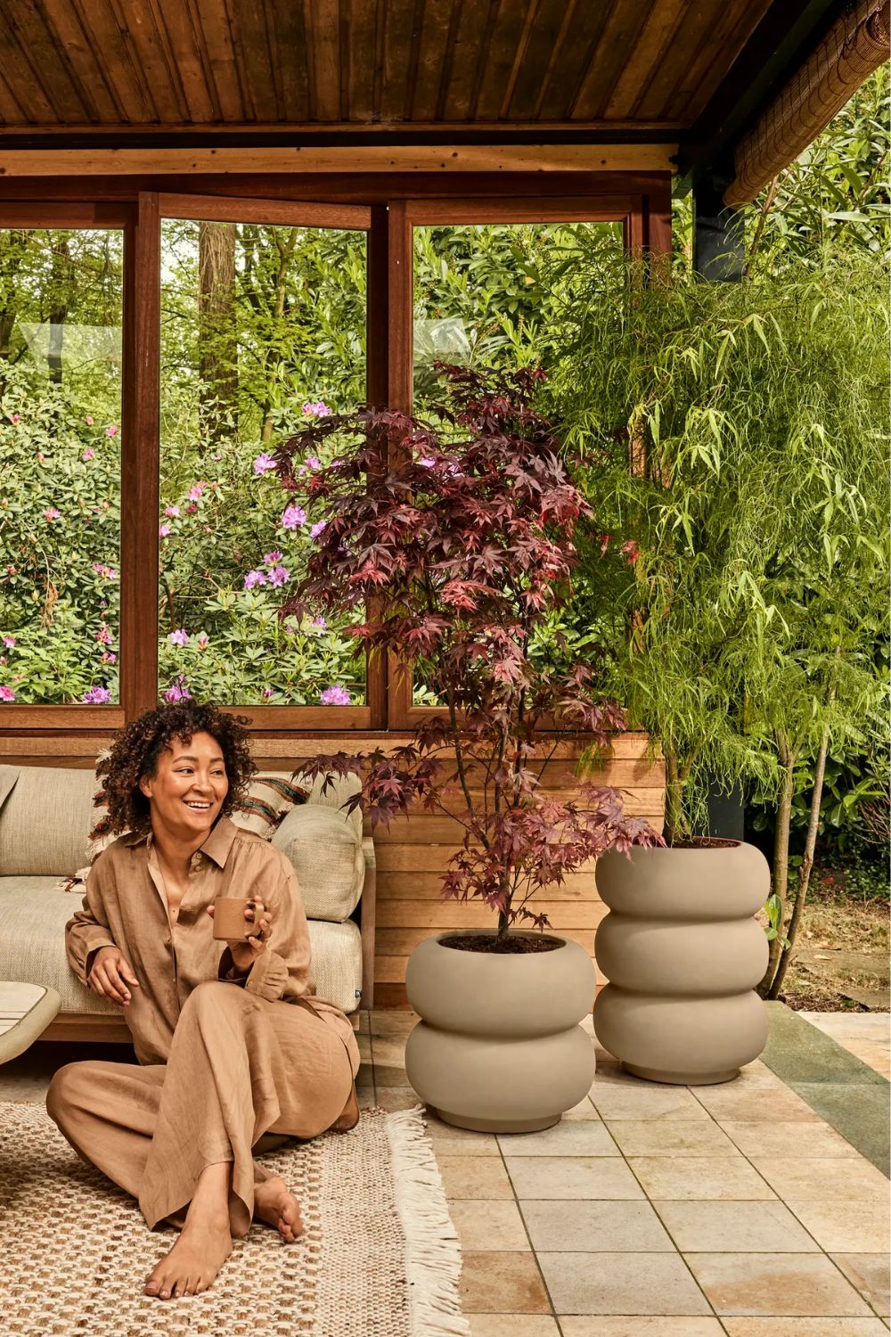 Pot de fleur Elho Amber Roll Low 40cm Beige Équilibré